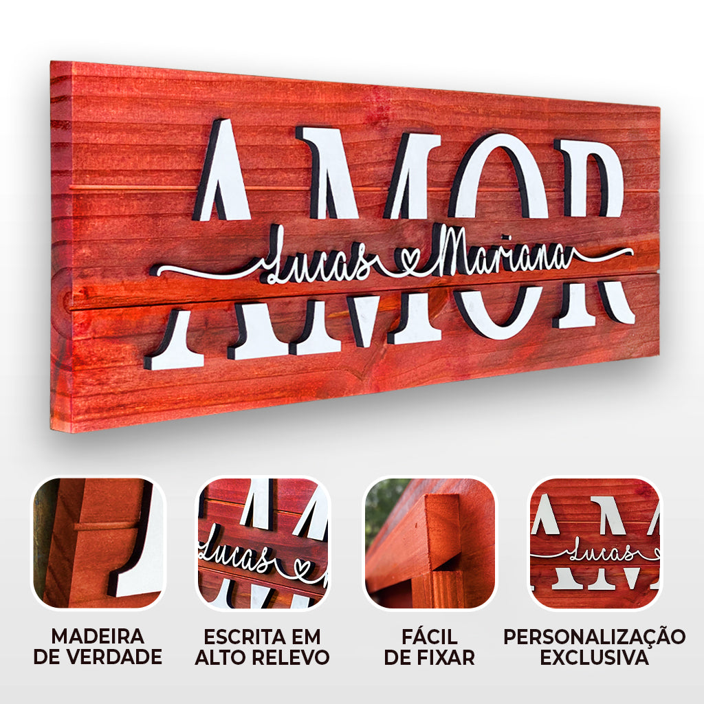 A Placa do Amor Personalizada é feita com corte preciso, letras em alto-relevo e acabamento impecável.